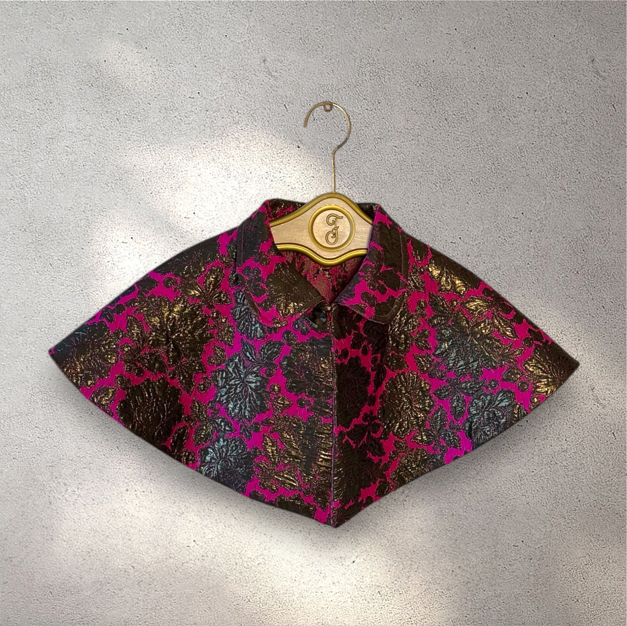 The Capelet reversable fuchia & olive green jacquard